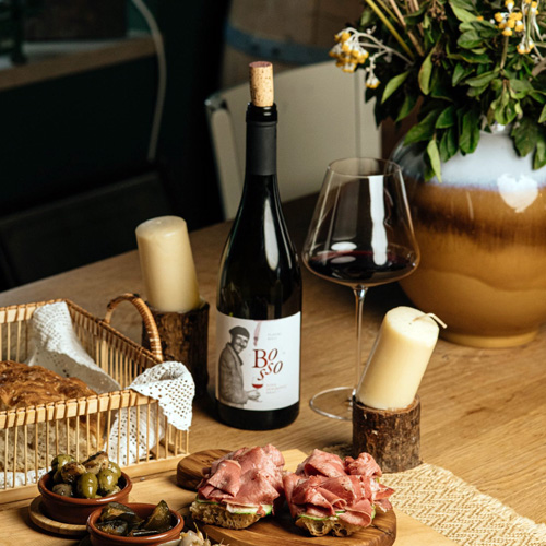 Bosso ist ein trockener Rotwein aus den Weinbergen von Brač, hergestellt aus der autochthonen dalmatinischen Sorte Plavac Mali. Er reifte 14 Monate lang in slawonischen, französischen und amerikanischen Eichenfässern. Bosso hat eine dunkelrot-violette Farbe, er ist vollmundig, elegant, abgerundet, mit reichen Tanninen und ausgeprägten Aromen von dunklen Beeren, Johannisbrot und mediterranen Kräutern in der Nase. Am Gaumen zeigt er Aromen von Pflaumenkonfitüre, Rauch und einen Hauch von Vanille. Passt gut zu: gegrilltem Blaufisch, dalmatinischer Spezialität Pašticada.